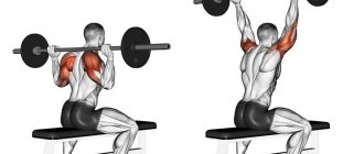Не забываем про первый разминочный подход без веса на 12 повторений.